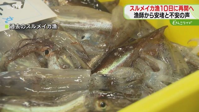 全国に停止命令が出された小型船のスルメイカ漁について、11月10日から再開される見通しとなりました。 【経緯】漁師は「収入ゼロ」休漁続くスルメイカ 観光地や加工業者も“死活問題” 函館市長が漁獲枠拡大要請 禁漁から一転、漁師からは安堵の声が聞かれました。 函館市の鮮魚店です。 新鮮な魚介類がずらりと並ぶ中、名物のスルメイカは品薄の状況が続いています。 (紺地鮮魚 紺地慶一代表)「函館の漁師さんは貧乏くじを引いた。かわいそうだよね。ことしはイカたくさんありますよって言って、獲り過ぎて提供できませんって言ったら笑われちゃうでしょ」 特に観光客がお目当ての活イカは、いま函館の観光地から姿を消しています。 小型船のスルメイカ漁を巡っては、青森県などで豊漁になったことにより、10月24日時点で5896トンと漁獲可能量の4900トンを超えました。 水産庁が採捕停止命令を出す事態になっていました。 11月5日には漁獲枠が857トン増枠されましたが、依然として漁獲量が上回る状態が続いていました。 函館市ではスルメイカの取扱量が年々減少し、2025年の夏ごろまで10年前の3500トンから10分の1近くまでその量を減らしていました。